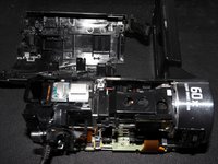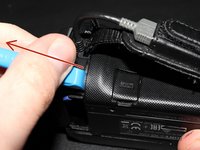 Use guitar picks to pry off the entire top and right panel of the camera (they are one piece).