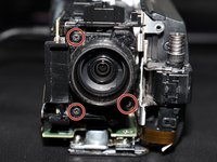 Remove the screw at the front of the camera on the bottom right corner, that holds the inner lens cover in place.