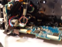 Using tweezers, carefully detach the black and white wire connected to the bottom of the motherboard near the lens panel.