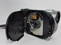 • Once the disc door is open, locate the screw (Phillips #00) on the inside, top right corner, closest to the camcorder lens.