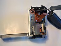 Remove the two 3mm Phillips #00 screws from underneath the plastic cover.