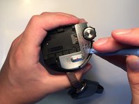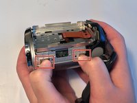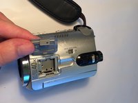 Gently pull the black plastic hard drive cover away from the body of the camera. This will expose the hard drive.
