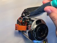 Replacing the lens of the DCR-SR42 is a simple procedure that will take no more than 30 minutes. However, the user should be careful when disassembling the camera in order to avoid damaging the flex cable or any other internal components of the camera. The user should also ensure that the battery is disconnected from the camera at least an hour before disassembly is attempted, since capacitors inside the camera can remain charged with electricity some time after the battery is removed. It is necessary to allow capacitors to discharge to prevent injury to the user or damage to the camera.