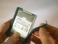 Using your fingers, pull the black rubber bumpers off of the HDD.