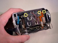 Unscrew the top three 3mm Philips screws with the Phillips precision screwdriver. /Unscrew the top three 3mm Phillips screws with the Phillips precision screwdriver./Provide a better close up for this picture.