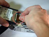 Using the pointed black spudger, carefully open the little black clasp on the large ribbon wire port.