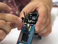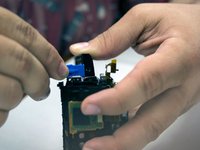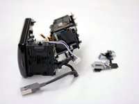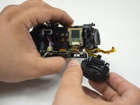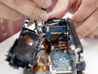 Orienting the camera such that the right side is facing you, remove the wire harness connecting the lens assembly to the motherboard using your tweezers.