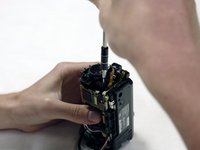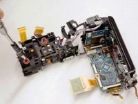 Orienting the camera such that the right side is facing you, remove the single 5.5 mm Phillips #00 screw from the start button.