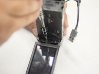 Remove the two 4.5 mm Phillips #000 screws connecting the lens assembly to its casing.