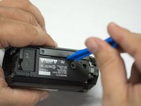 Use the blue plastic opening tools to gently ease the camera shell off of the camera.