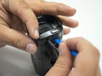 Turn the camera around to the grip side and remove the 5.5 mm Phillips Head screw using your J00 Phillips Head screwdriver.