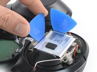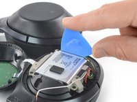 Lever down the spudger to pry up the ear cup cover and pop open the plastic clips.
