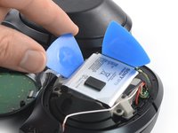 Lever down the opening pick to pry up the battery. This might require a little bit force due to the battery adhesive underneath.