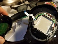 Gently lift the white flap on one side of the ribbon cable connecting the ear cup to the main board and gently slide the cable out. Rock it back and forth a little if needed.