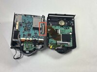 Detach the ribbon cable that connects the two halves of the device to split them apart.