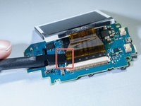 Undo the ribbon cable attached between the motherboard and screen by prying up black tab which holds the cable, using spudger. (See pictures)