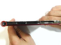 Using the Phillips head screwdriver PH000, remove the two 1.4 mm screws that are located on the backside of the device.