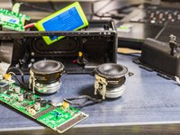 Two passive radiators are present inside the device. They're fairly heavy but rubberized, and they resonate and are tuned for low frequency reproduction. These move a LOT when it's playing. 7-10mm per side.