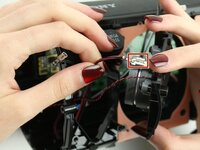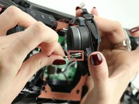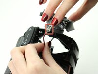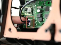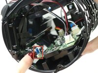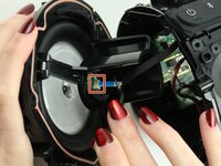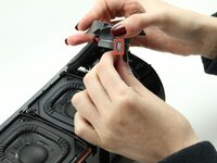 Disconnect the second blue film cable on the left edge of the speaker’s motherboard.