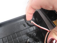 Gently remove the rubber top from the two plastic knobs that hold the microphone in place.