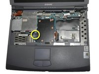 Remove the 4mm screw on the right rear side of the laptop next to the audio ports using a Phillips #0 screwdriver.