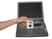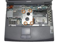 With the hard drive removed, unscrew the four 6mm brass colored, Phillips screws under the hard drive cage.