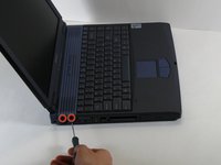 There are two screws on the left hand side of the laptop near the IR receiver. remove them using a #00 Philips head screwdriver.