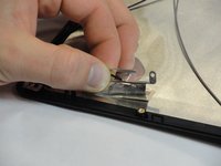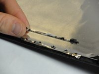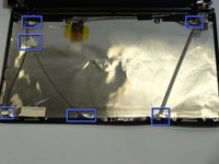 Use a Phillips #1 screwdriver to remove the three 8.88-mm screws attached to the metal hinge at the corner of the laptop.