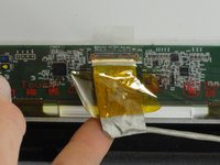 Gently lift and pull the LCD screen up. The back of the screen has a connection attached by yellow tape.