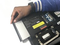 Carefully lift the battery out of its position away from the laptop.