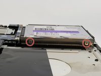 Use the Phillips head screw driver to remove four 4mm screws located on both sides of the hard drive.
