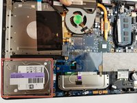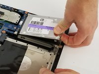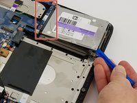 Use a plastic opening tool to lift the hard drive up to the point where it can be grabbed.