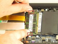 Gently push the silver heads outwards on either side of the RAM chip to release it from the slot.