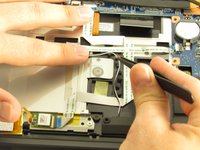 Using tweezers, carefully unwind the speakers' wires from the plastic brackets holding them.