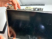 Carefully remove the screen from the supporting frame and lay it down on the keyboard of the laptop.