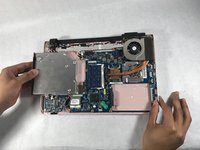 Detach the hard drive by disconnecting it from the motherboard, pulling it gently from left to right.