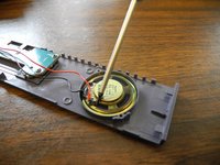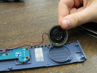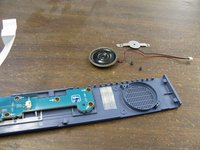 There are two speakers on the underside of the speaker panel, one on each end. Unplug both sets of the black and red wires from the circuit board by gently pulling at the base.