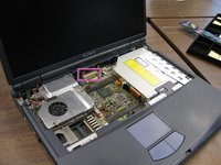 Attach the new keyboard’s ribbon cable to the motherboard by carefully inserting it into the white plastic outlet located at the top center of the motherboard.
