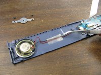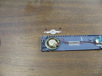 The speakers are cemented to the panel. To remove the speakers from the panel, place either the screw driver or tweezers in the hole on the outer edge of the speaker and pry it off.