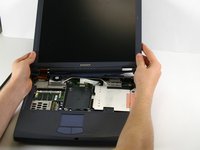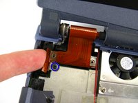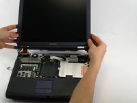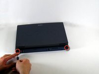 Remove the screw in the upper left corner that connects the display frame to the laptop.