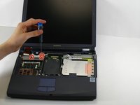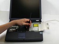 There are two screws on the left hand side of the laptop near the IR (Infared remote) receiver (see image). Remove them using a Phillips #00 Screwdriver.