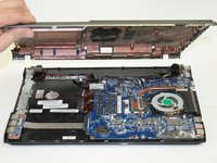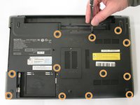 Rotate the laptop so that the battery well is closest to you and the fan unit is on the left side.