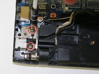 Use a Phillips #0 screwdriver to remove the two 3.0 mm screws securing the left and right speaker unit to the laptop.