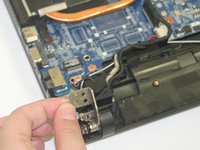 Use a Phillips #0 screwdriver to remove the one 3.0 mm screw attaching the grounding wire to the left lid hinge.
