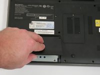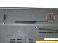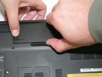 While pushing the "release" tab upward, lift the battery and pull outward to remove it from the laptop.
