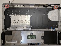 Remove the two 5mm in length Phillips head screws holding down the track pad panel to the track pad.