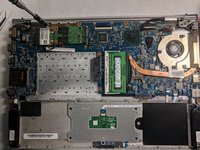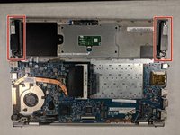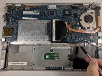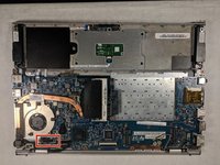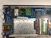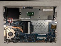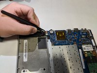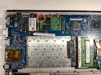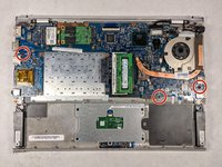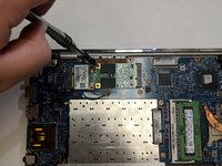Unscrew the three 5mm Phillips head screws holding the motherboard to the laptop.