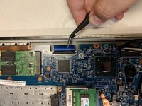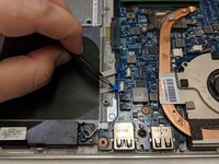 Remove the ribbon cable by pulling the blue tab away from the motherboard.