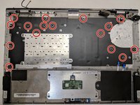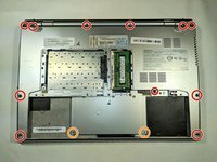 Remove the eleven 5mm in length Phillips head screws around the perimeter of the back panel of the laptop.