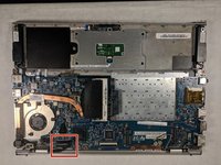 Unscrew the 5mm Phillips head screw securing the SSD in place on the motherboard.